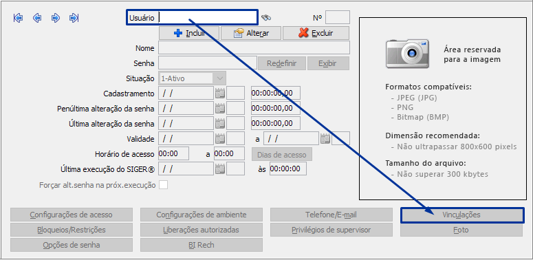 Para não solicitar operador toda vez que alterar ou consultar o funcionário, poderá vincular na manutenção do usuário, MENU U- Usuários, opção M- Manutenção de usuários