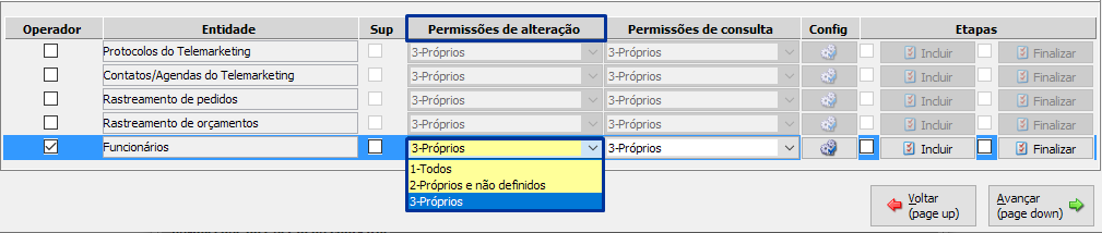 3-PRÓPRIOS: Permite alterar apenas registros próprios.