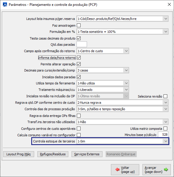 No GIN 1.1-P, botão <Gestão Industrial>, botão <PCP>, campo "Controla estoque de terceiros = 1-Sim" (ativar o controle na produção e Faturamento):