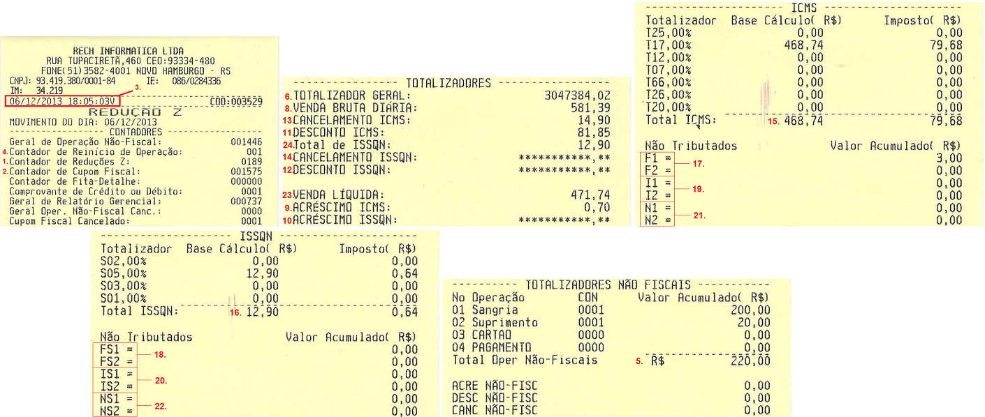 É a data e a hora que a redução Z foi emitida, corresponde ao campo de data e hora no cabeçalho do documento impresso.