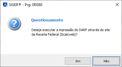 Ao listar a DARF com vencimento 25/05/2022 MENU 4.4-P SIGER® dará opção para listar a DARF pelo SICALC WEB.