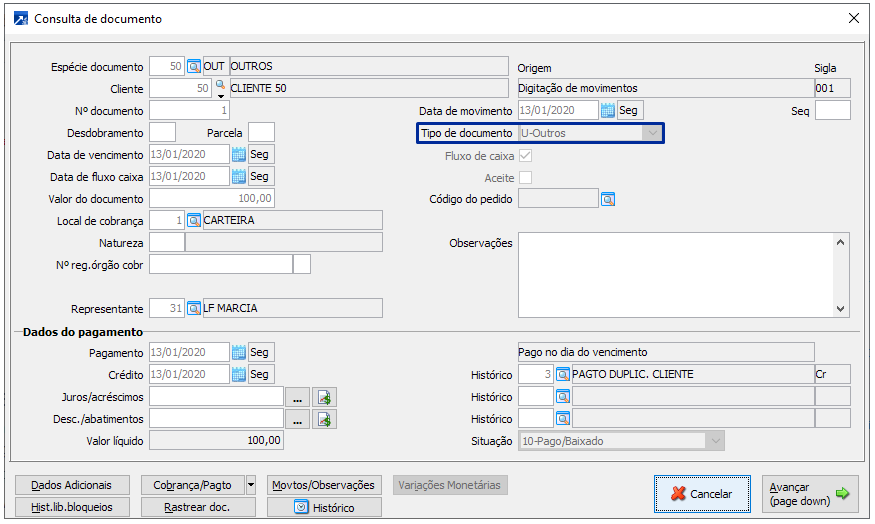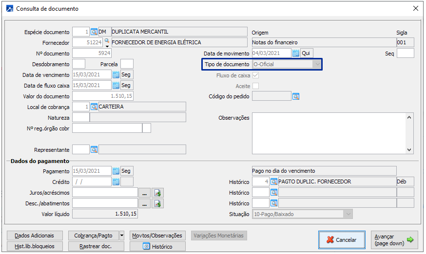 Como identificar o tipo de documento na consulta dos documentos do financeiro: