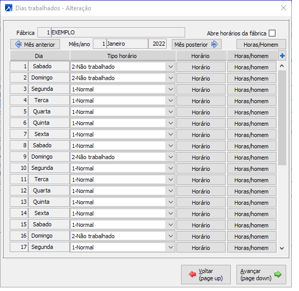 Alguns dias já estão definidos como dias "não trabalhados", devido a feriados.