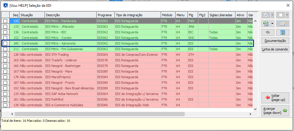 Observação: para exibir a linha de comando, clique no botão <Linha de comando> na janela de "Seleção de EDI" (acima).