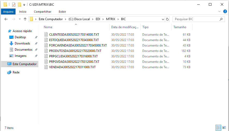 Ao avançar e confirmar na janela de configurações do EDI Bic (Mtrix), no menu FTR 6.4-K, será abera a janela de "Gerenciamento do EDI", onde será possível iniciar a exportação (botão <F6-INICIAR EXPORTAÇÃO>).