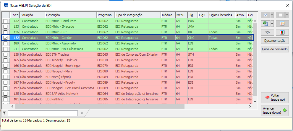 Observação: para exibir a linha de comando, clique no botão <Linha de comando> na janela de "Seleção de EDI" (acima).