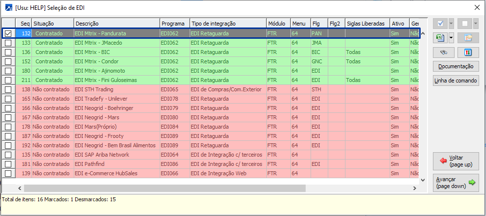 Observação: para exibir a linha de comando, clique no botão <Linha de comando> na janela de "Seleção de EDI" (acima).