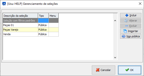 Permite salvar/fixar a seleção realizada, dessa forma não será necessário refazer a cada exportação, bem como pode ser utilizada em outros menus do sistema que utilizem a seleção padrão de vendas do faturamento.