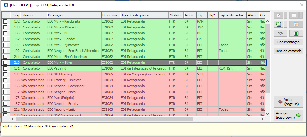 Observação: para exibir a linha de comando, clique no botão <Linha de comando> na janela de "Seleção de EDI" (acima).