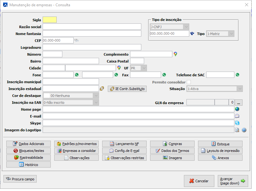 Manutenção das configurações e parametrizações do módulo de Controle de Estoques.