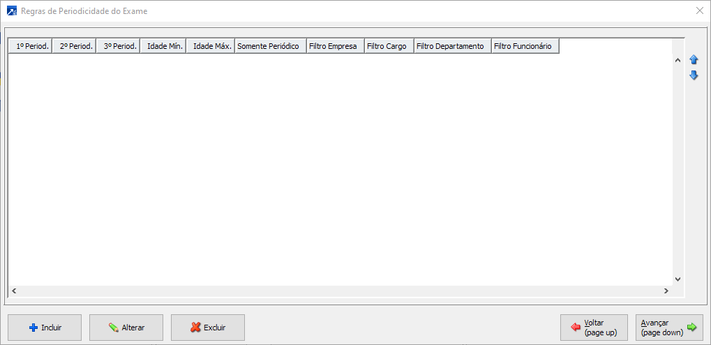 Ainda é possivel informar outras regras de periodicidades especificas para um cargo, depto, setor, idade, etc. Para isso deves clicar na aba "regras de periodicidades" e clicar no botão < incluir > .