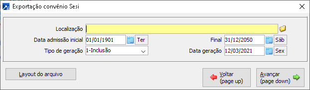 ulizado para exportar as informações para o convênio SESI.