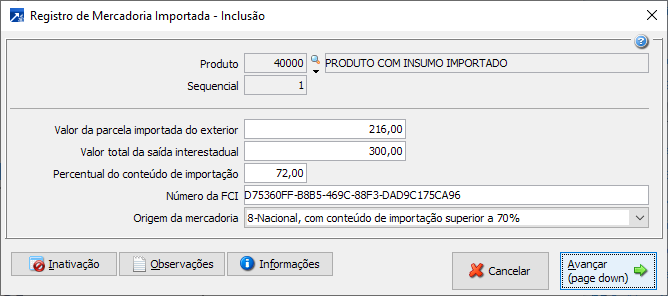 Obs.: O Percentual do conteúdo de importação, bem como a Origem da mercadoria são preenchidos automaticamente pelo SIGER® baseados nos percentuais de compra e venda.