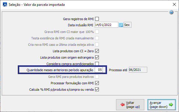 Quando marcado, após calcular o CI (Conteúdo de Importação) dos produtos selecionados na primeira janela, vai criar automaticamente os registros de RMI no FAT 1.D, mas sem o número da FCI, pois este precisa ser gerado no aplicativo da FCI que é independente do SIGER®.