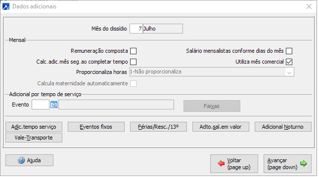 O botão Adicional por tempo de serviço, utilizar quando queres configurar o adicional por tempo de serviço para os funcionários limitados a uma data e percentual.