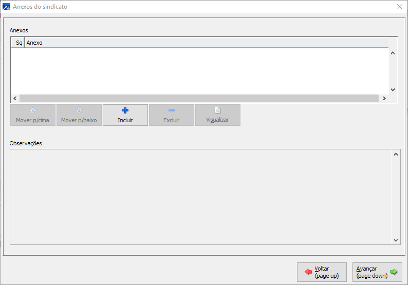 Nesta aba, podes anexar documentos referente ao sindicato, como por exemplo Acordo coletivo, Processos, etc. Só clicar em incluir e selecionar o arquivo, avançar e salvar.