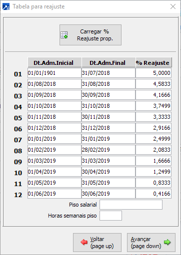Utilizar para aplicar reajuste salarial proporcional pela data de admissão de determinado período aos funcionários determinado por Acordo Coletivo.