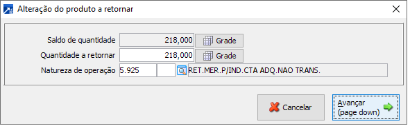 Permite alterar a quantidade a retornar do item e a natureza de operação da nota de retorno.