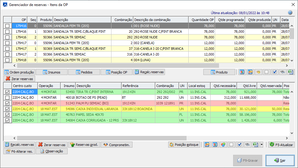 A OP deve estar com posição parcialmente/totalmente programada ou em produção