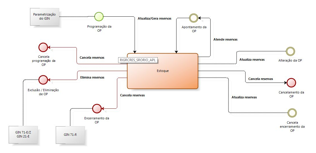 Este recurso, disponível no menu GIN 2.2-G, permite ao usuário visualizar todas as ordens de produção (origem), cujo insumo possui quantidade necessária para a produção, podendo assim reservar as mesmas no estoque. Para que seja possível controlar as reservas, é necessário que exista a integração do Gestão Industrial com o Estoque, e o campo "Reserva estoque" estar marcado.