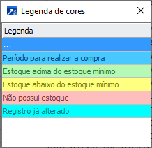 Amarelo claro = "Estoque abaixo do estoque mínimo" = O estoque do produto esta abaixo do mínimo cadastrado