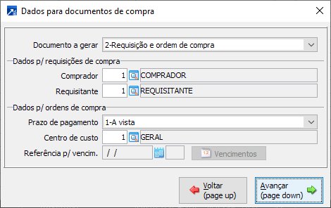 Alterar dados para a geração dos documentos de compra.