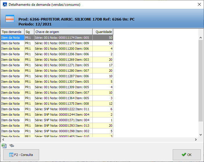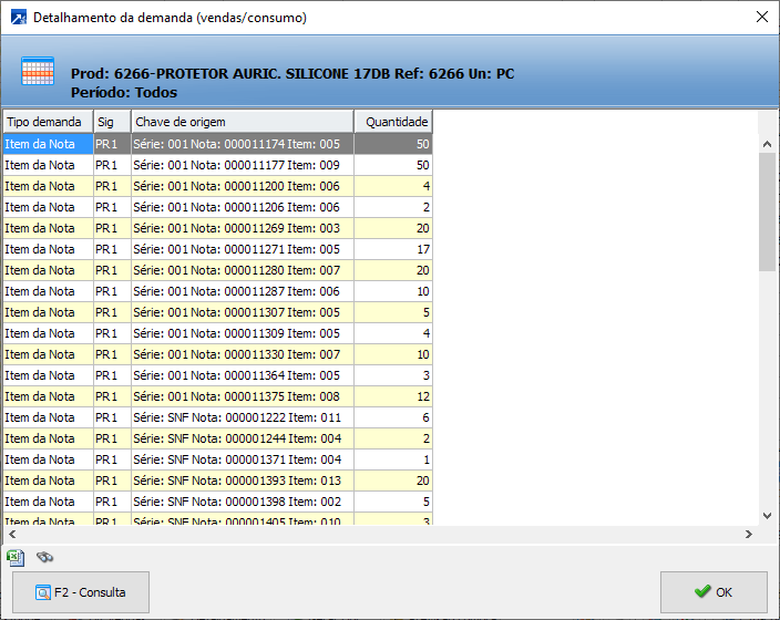 Hist. Vend/Con - Exibe os registros processados que compõe o histórico de venda do produto no período selecionado