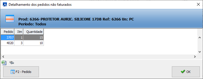 Qtd.Não Fatur. - Exibe os registros de itens de pedidos que ainda não foram faturados e suas respectivas quantidades