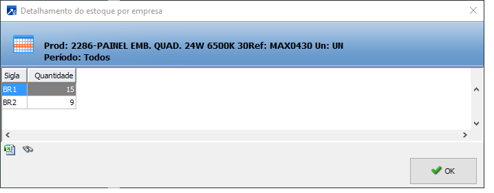 Estoque - Exibe as quantidades em estoque detalhadas por empresa consolidada