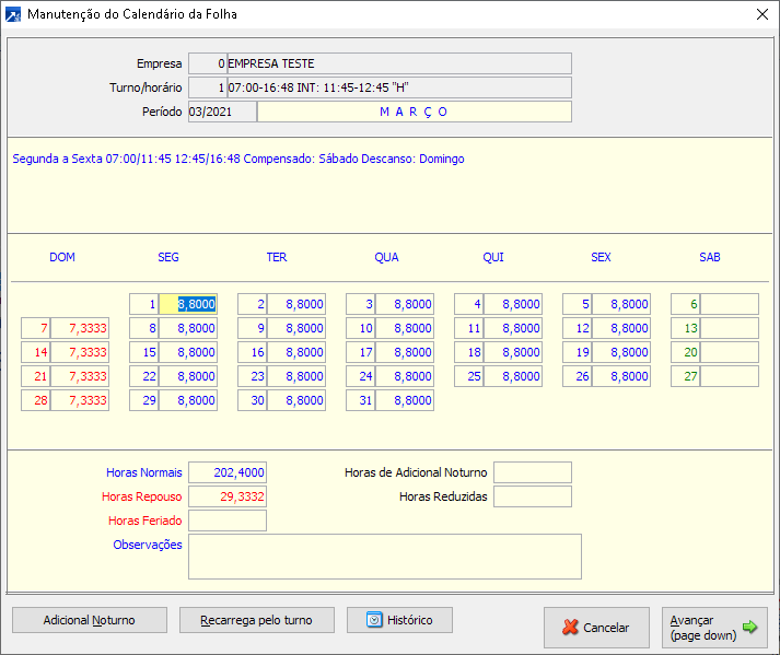 Adicional Noturno: Informa a quantidade de horas noturnas por dia.
