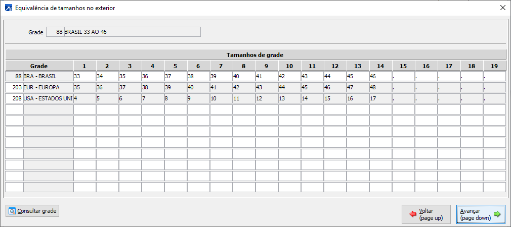 IMPORTANTE: Em casos onde o cliente possua mais de um tipo de grade (exemplo: Uma grade do 33 ao 46, outra grade do 12 ao 26) é recomendável que a empresa faça um arquivo de importação para cada tipo de grade.