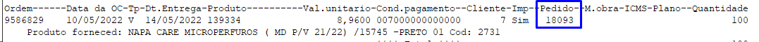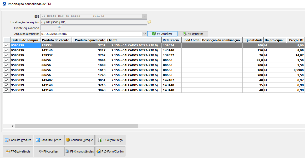Ao clicar no botão "F6-Importar", as informações serão importadas e o pedido será gravado.