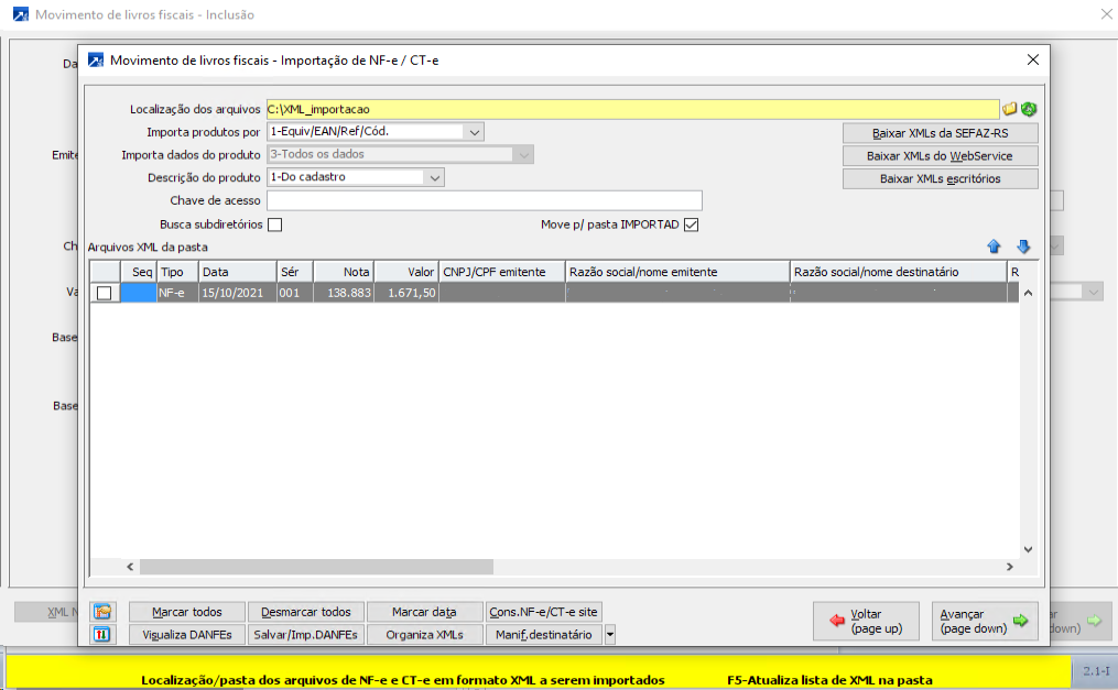 A importação pode ser feita pelo módulo de Livros Fiscais, Estoque ou Compras, mas sempre é necessário que o módulo de Livros Fiscais esteja liberado para que o Estoque ou Compras aceitem importar notas de saída.