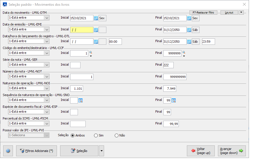 Será exibida a janela de inclusão do movimento, já com os dados pré-carregados.