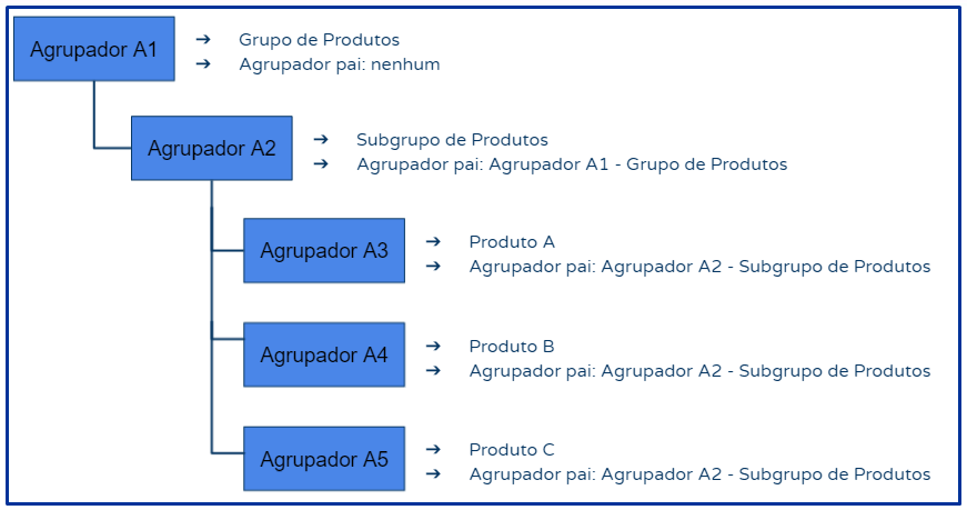 Para processar as metas A1, A2, A3 deste exemplo temos duas possibilidades conforme o parâmetro "Explosão de metas pais" for configurado: