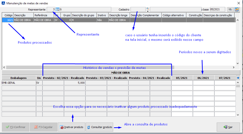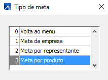 Inserir o código do representante que será utilizado para cadastro da meta.