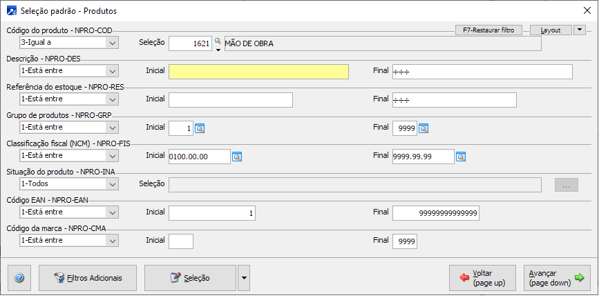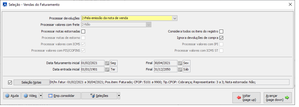 Esta é a mesma seleção existente nos relatórios de venda do módulo faturamento.