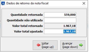 Exibe o valor total retornado para a nota de remessa, a partir da quantidade retornada do item e valor unitário da nota fiscal de beneficiamento.