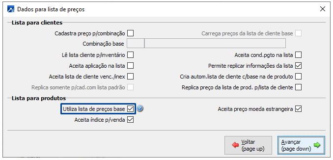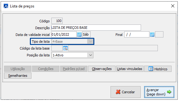 2. A lista base serve apenas como base para os preços das outras listas e não pode ser utilizado diretamente em pedidos, orçamentos e retiradas ou em importações e exportações de EDI/Mobile.