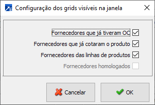 Exibir os fornecedores potenciais do produto do item da requisição selecionado no grid