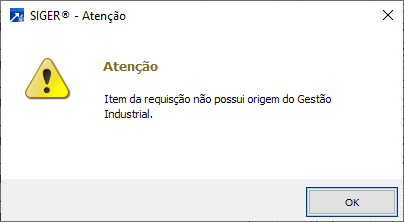 Quando o item não tem origem Gestão Industrial (vinculo direto), exibe mensagem abaixo: