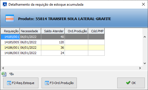 Para um item de requisição de estoque, pode haver itens de várias OPs diferentes (quando é gerada requisição acumulada).