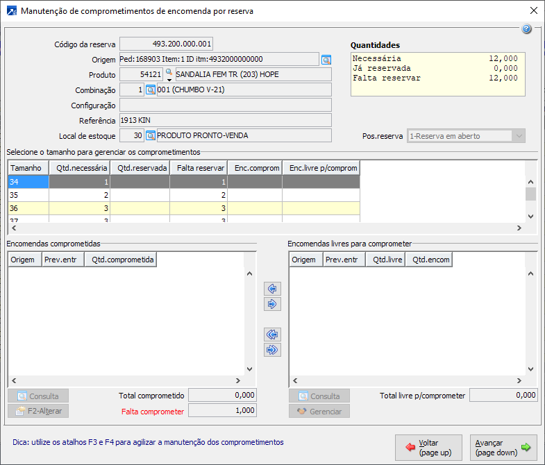 Exibe os dados do comprometimnto da emcomenda da reserva.