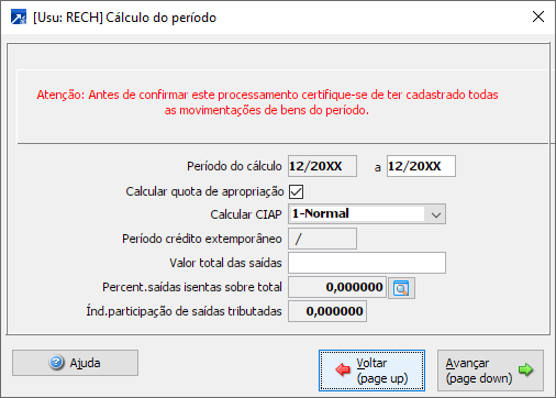 Acessar o menu GPA 2.2-C – Cálculo do período => efetuar o cálculo do mês 12.