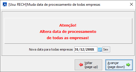 Acessar o menu LFI 1.2-P – Muda Data de Processamento.