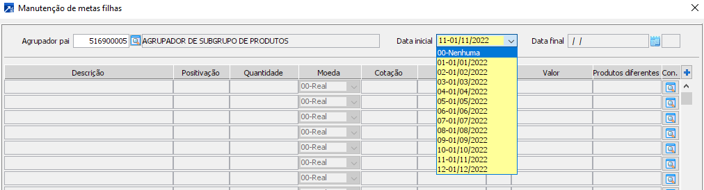 Data inicial das metas: herdará do agrupador pai