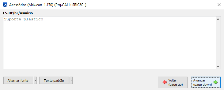 Descritivo dos acessórios do item da OS.