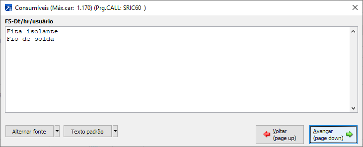 Descritivo dos consumíveis do item da OS.