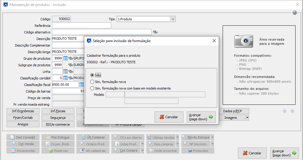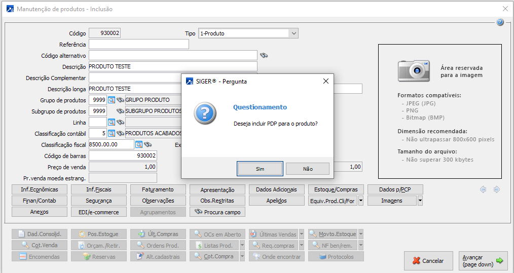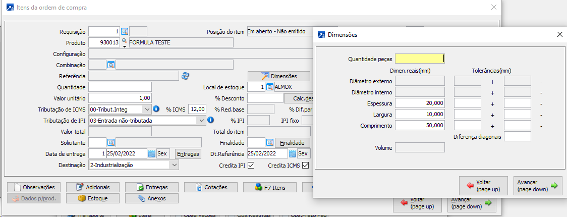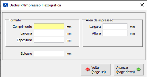 ![]() 10-Impressão flexográfica: Na manutenção da formulação deste grupo, o SIGER® irá abrir ao final da manutenção uma janela possibilitando ao usuário informar dados para impressão flexográfica.
