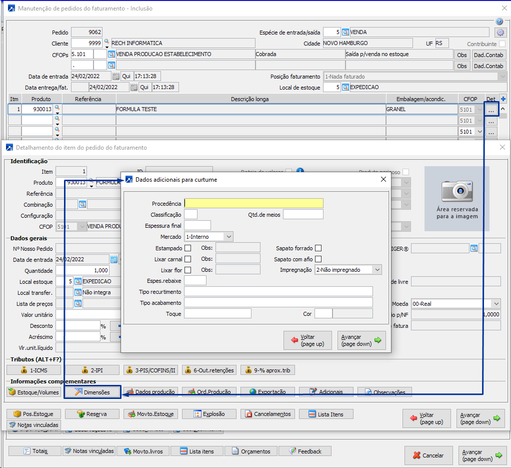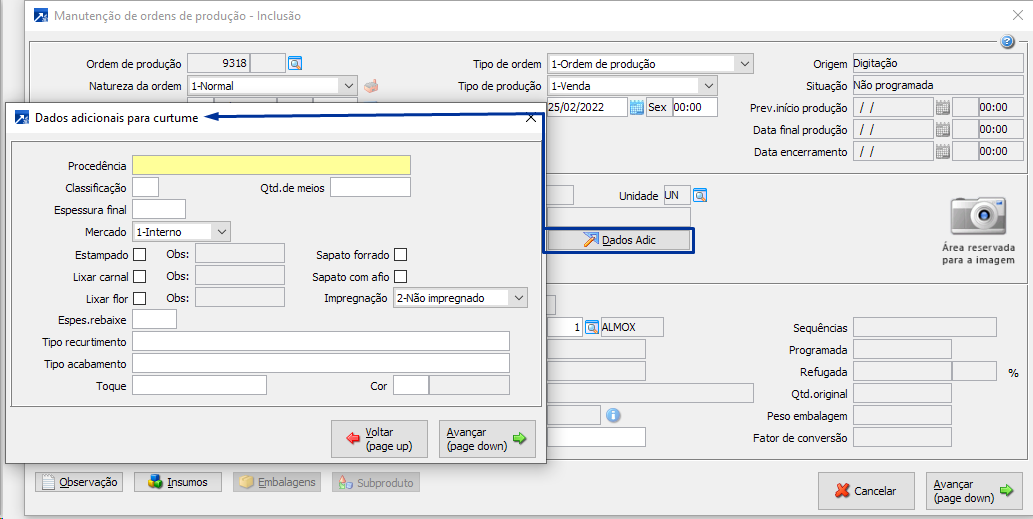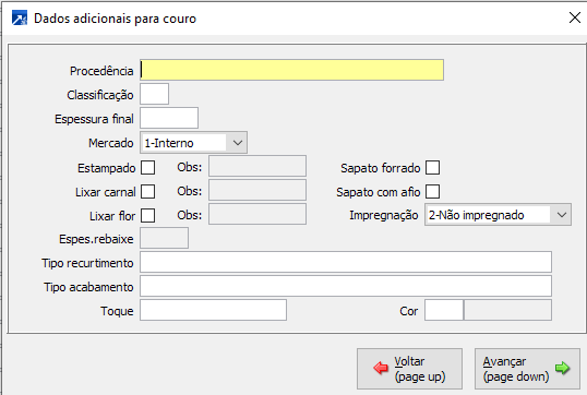 ![]() 07-Dados para couro: Na manutenção da formulação deste grupo, o SIGER® irá abrir ao final da manutenção uma janela possibilitando ao usuário informar dados para couro.